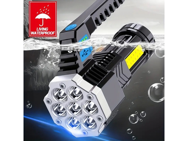 - 7 diod LED o wysokiej jasności i dużym zasięgu. Z boku zastosowano źródło światła typu COB o dużym zasięgu oświetlenia, które nadaje się również do oświetlenia bliskiego.