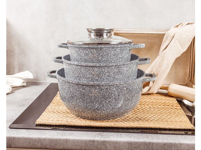 KOMPLET GARNKÓW MARMUROWYCH GARNKI ZESTAW INDUKCJA (8532)