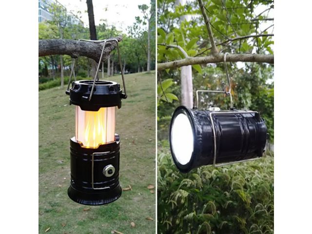 Akumulatorowa lampa z efektem płomienia i ładowarka słoneczna w jednym. Szczególnie nadaje się na kemping, do domku letniskowego, na ryby, pod namiot, na festiwale, do ogrodu. Za pomocą panelu słonecznego można ładować baterię wbudowaną w lampę kempingową i ładować telefon komórkowy z lampy za pomocą wejścia USB.