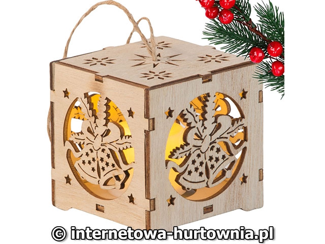 DREWNIANY WISZĄCY LAMPION NA CHOINKĘ OŚWIETLENIE (26176)