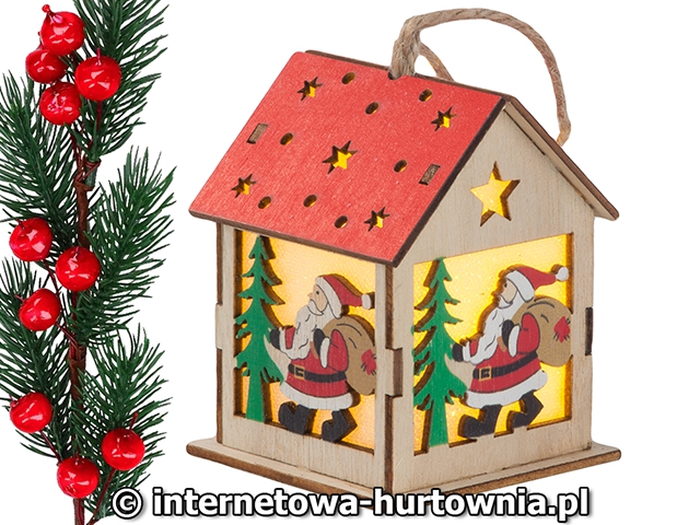 DREWNIANY WISZĄCY LAMPION NA CHOINKĘ OŚWIETLENIE (26178)