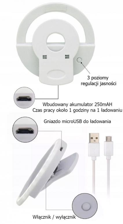 Pierścieniowa lampa LED do selfie
