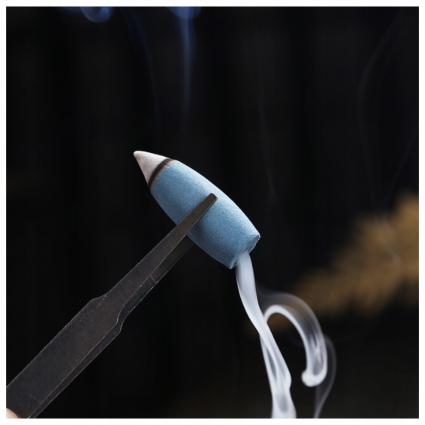 ▶ Stożkowe kadzidło należy umieścić na szczycie kominka i podpalić wierzchołek stożka.
