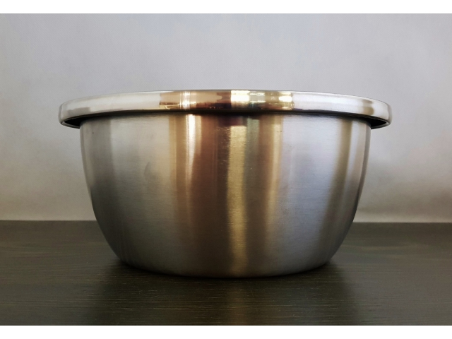 Środek polerowany, rant miski wywinięty polerowany, zewnętrzna część szczotkowana.