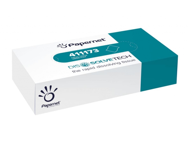 Chusteczki kosmetyczne Papernet 411173 wykonane zostały w innowacyjnej technologii Dissolve Tech. Jeśli zostaną przypadkowo wrzucone do toalety, rozpuszczą się tak jak standardowy papier toaletowy.