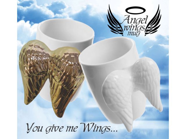 - piękny kubek ze skrzydłami anioła