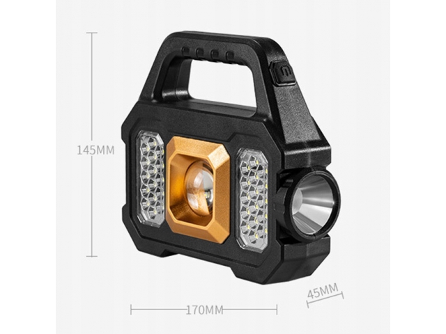 Dwustronna Latarka akumulatorowa została zaprojektowana z myślą o wielofunkcyjnym zastosowaniu. Może być używana przez służby mundurowe, wojsko, myśliwych, miłośników przyrody lub do użytku domowego.. Jest wyposażona w super jasne oświetlenie LED oferujące do 1200 LM, do 20 godzin pracy i 800 m (2625 stóp) zasięgu wiązki. Bardzo duży akumulator o pojemności 4000 mAh, dzięki czemu bateria wytrzymuje naprawdę długo. Dodatkowym atutem latarki jest jej wodoodporność.